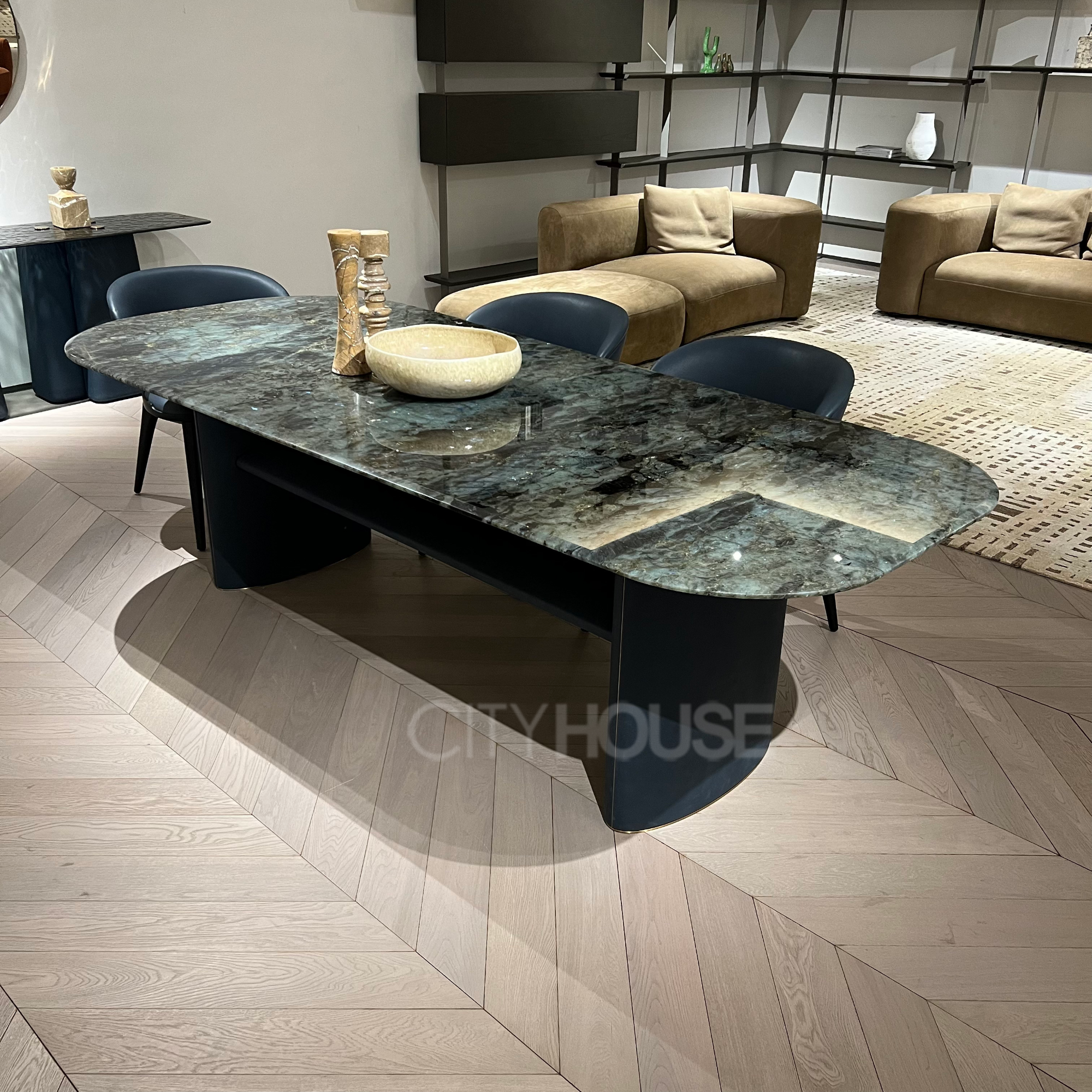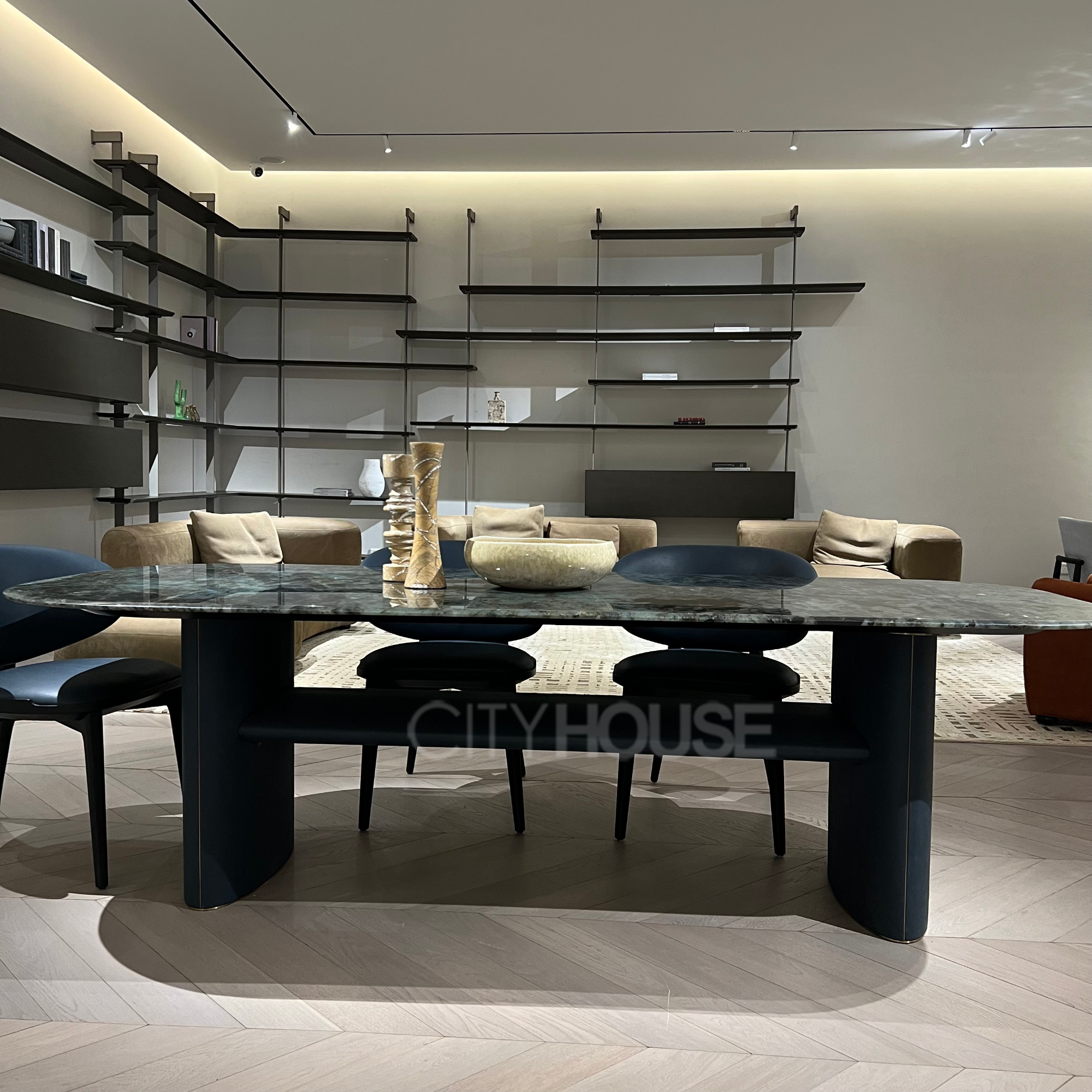 • Italian light luxury restaurant with leather and marble dining table